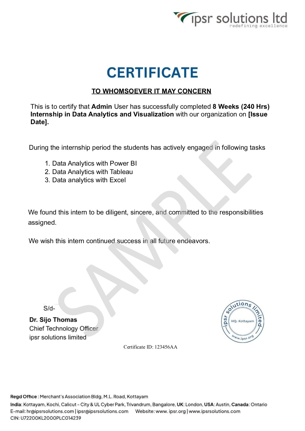 ipsr solutions limited, a leading technology solutions provider, is pleased to announce a Summer Internship Data Analytics & Visualization , along with an upskilling Certificate Course.