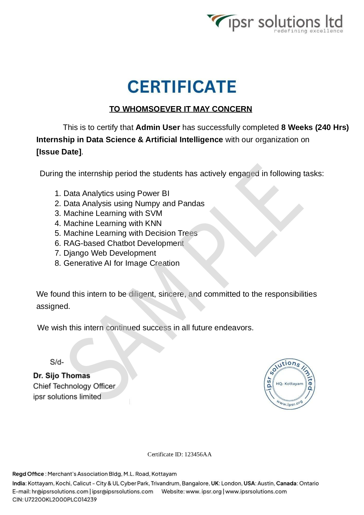 — Dr. Mendus Jacob, CEO & Chief Mentor, ipsr solutions limited —